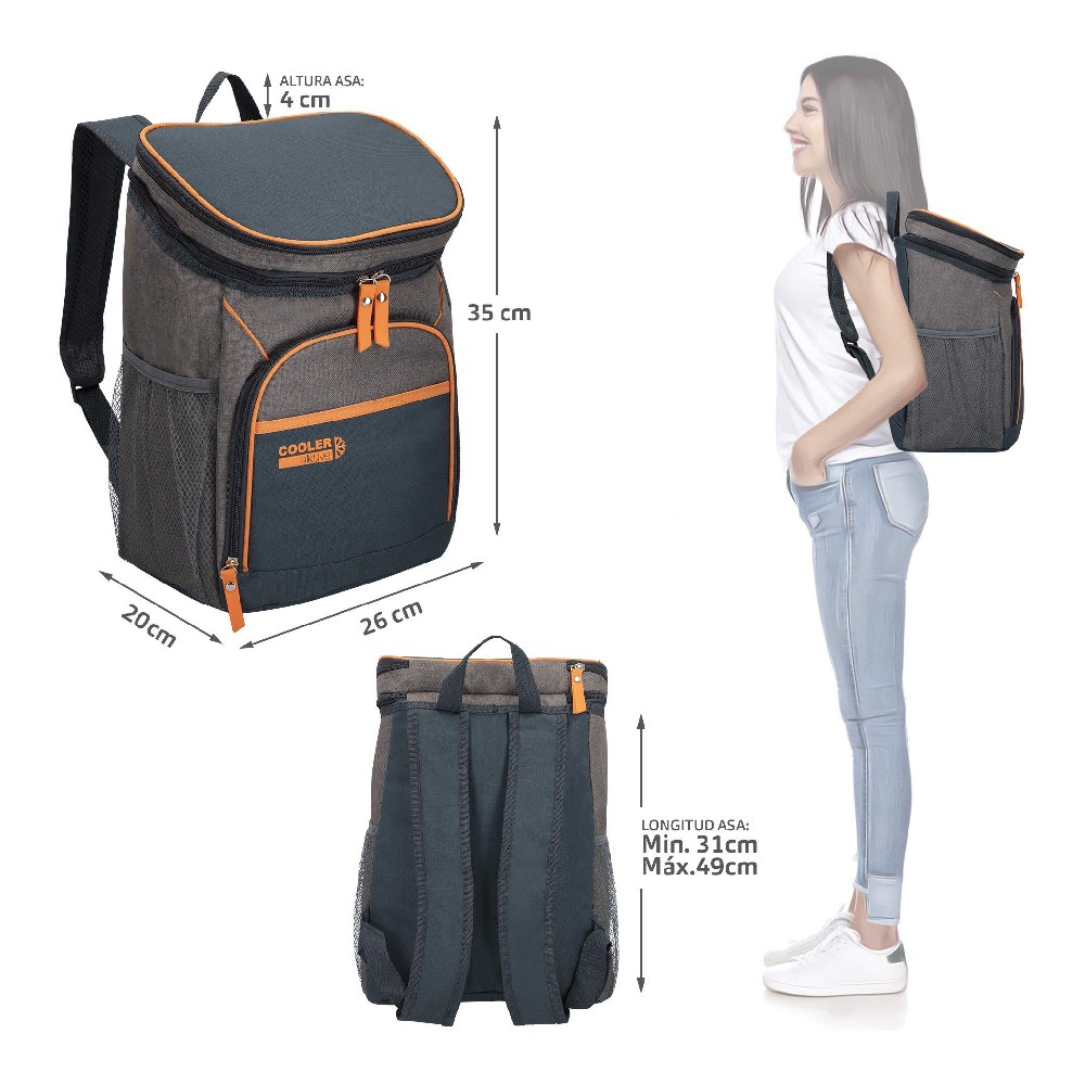 The Aktive cooler backpack model 80790 is a practical and functional accessory designed to keep your food and drinks fresh longer thanks to its thermal capacity. Made from polyethylene and plastic, materials that ensure durability, resistance, and easy cleaning, this backpack stands out for its neutral gray color, offering a modern and versatile look. It provides a total capacity of 15 liters, ideal for carrying enough provisions for outdoor trips, picnics, short travels, or workdays. Its approximate dimensions, 26 x 20 x 39 cm, offer optimal volume without being bulky or uncomfortable to carry. Designed with an ergonomic structure for easy transport as a backpack, it distributes weight evenly and frees your hands during movement. Its thermal insulation ensures proper temperature maintenance, whether to keep cold or heat for several hours, promoting hygiene and preservation of stored products. This model suits those seeking a compact and efficient solution for transporting food in various situations, combining functionality, comfort, and a sober design. In short, the Aktive 80790 cooler backpack is a practical item that integrates the basic quality and performance standards required for daily or recreational use.